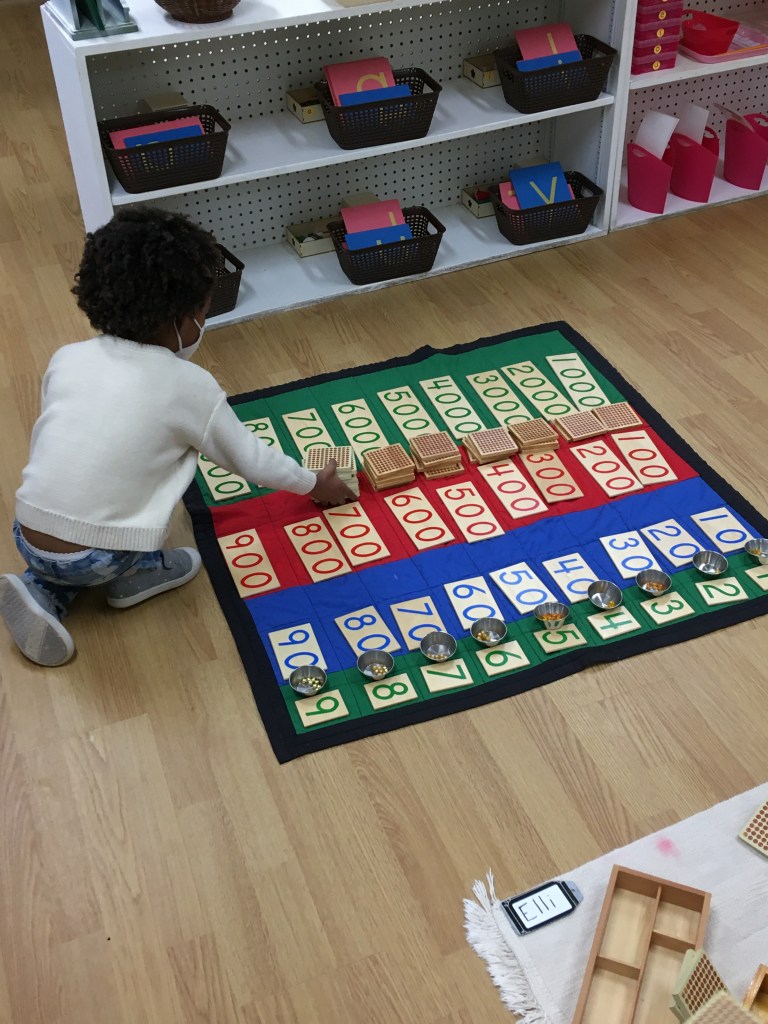 Between the ages of 3 and 6, Maria Montessori called this environment Casa dei Bambini (Children’s House). Everything in the classroom is child-size and hands-on materials are designed to support self-directed discovery and learning. Your child has extraordinary powers of mind; she possesses a once-in-a-lifetime ability to simply absorb information and concepts from her surroundings, like a sponge. The prepared environment includes an array of scientifically designed materials help to develop a new skill or reveal a new concept through your child’s use and exploration. Some provide the opportunity to perfect the practical skills of caring for her own needs or for the classroom environment. Some enrich her vocabulary and open the door to writing, reading, and the parts of speech. Others build on your child’s natural interest in counting and introduce an understanding of the decimal system and the processes of addition, subtraction, multiplication and division. Some encourage artistic self-expression through the introduction of skills and media. Use of the materials builds a foundation of concrete experiences of abstract concepts, such as mathematics, assisting your child to a deeper level of understanding.